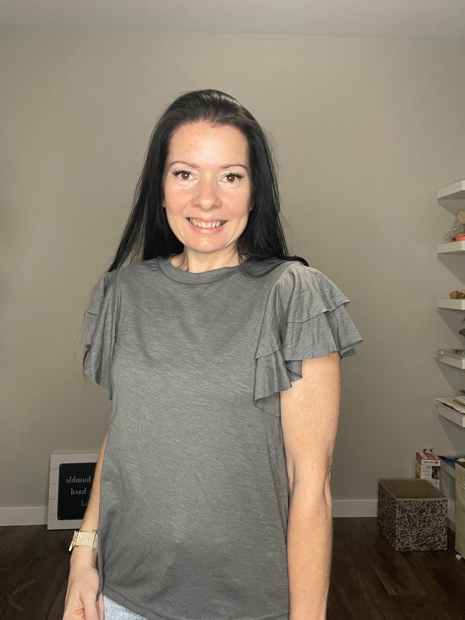 π€ Ruffles + Sass = Yes, Please! This dark grey beauty brings the drama (in the best way) with flirty layered ruffle sleeves and a classic round neck. Soft, comfy, and effortlessly chic β itβs your new go-to for dressing up denim or adding flair to basics!