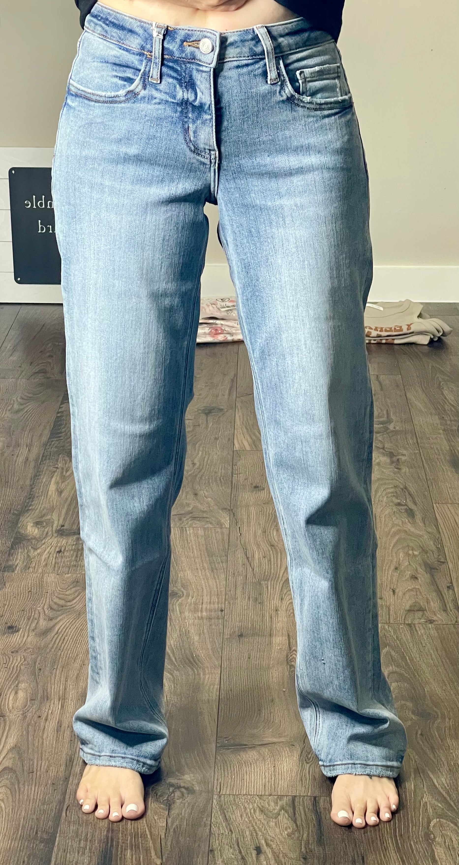 COMFORT STRETCH DENIM, MID RISE WAIST, FULL LENGTH, SLIM WIDE JEANS